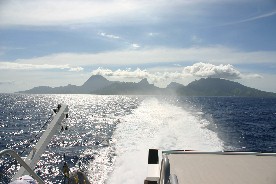 にした。私達が食事をしている間にタヒチ本島は見る見る小さくなり次第にモーレア島が近づい
