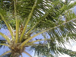 マングロープや椰子の木々の間から見える海は遠くに珊瑚が作った環礁があり、その内側は
