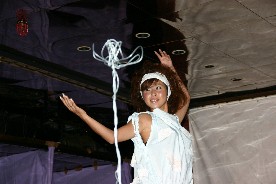 舞台上に移して作業を続けた。お昼までには何とかと思っていた私の笛も音が出るようになった。