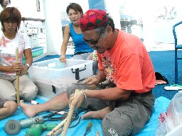 それにもめげず後方デッキではABOさんの縦笛を作る講習があった(写真上四枚)