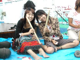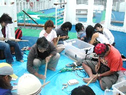 ABOさん達は強い風が吹く後方の甲板の上にブルーシートを敷いて作っていた。使っている