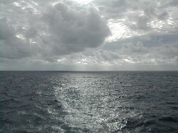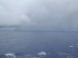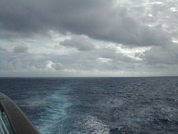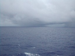 向かっていた。翌朝、船のデッキへ出てみると空一面に雲が広がっていた。水平線上の厚い雲