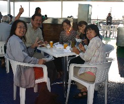 昼食はバイキング料理。長い間、船の中の食事ばかりだったので新鮮な食材と味付けに感動。