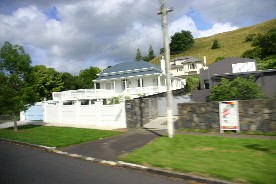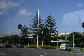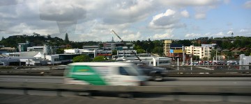 港からバスに乗ってオークランド空港へ。周辺の景色をカメラで写したのだが、バスのスピードが速いので