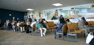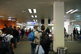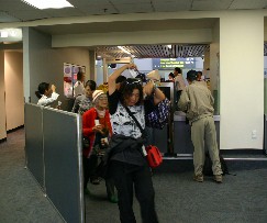 手荷物の検査を受けて出発ロビーへ(写真右)