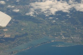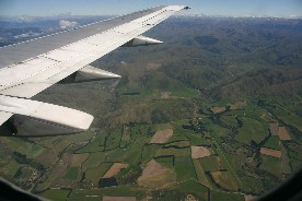 オークランド空港よりニュージーランド航空525便にて南島のクライストチャーチへ向けて出発