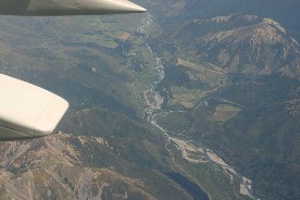 ジェット機はオークランドのある北島から南島のクライストチャーチへ。眼下には広大な海、そして南島の山脈が展開していた。