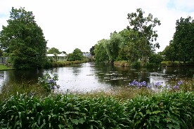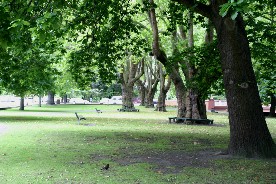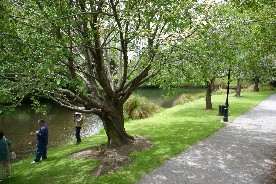 川と巨木の多い公園、これはクライストチャーチ市内では色んなところで見かける景色だ(写真上二枚)