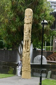 レストラン前の大きな道路を挟んで向かい側は公園になっていた。公園の中にあったトーテンポールらしき彫刻(写真右)