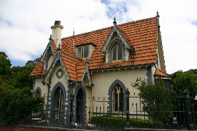 モナベール入り口にはここを管理していた番人の建物だというお洒落な建物があった(写真左)