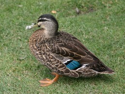 そして川にはこんな鴨も泳いでいた。野生のものだろうか、飼っているのだろうか(写真右)