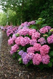園内には季節の花が咲き乱れていた。右はアジサイ(写真左、右)