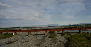 道路と並行に走っている鉄道(実はこの鉄道を通って再びクライストチャーチまで帰ってくる)(写真左)