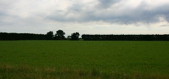 広大な牧場と牧場を囲んでいる防風林(写真右)