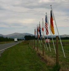 ティンセッドの入り口には観光客歓迎用の各国の旗が並んでいた(写真左)