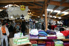 レストランに併設された店の中にはこの国の特産品である羊毛製品を売っていた(写真左)