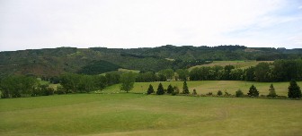 東側は上の写真で見るようになだらかな高原状の山々が連なり多くは羊などの牧草地になっている。(上の写真)
