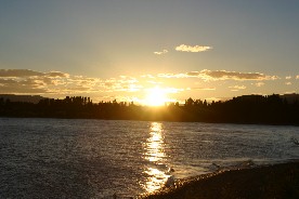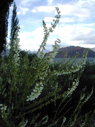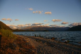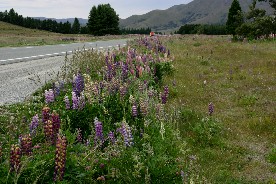 緯度が高い南島の夕暮れは遅い。ルピナスを初めとする色んな花が夕暮れの湖畔に咲いていた(写真上)