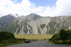 マウントクックに向かう道路(写真右)