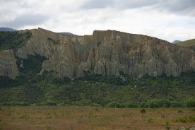 マウントクックへ向かう途中で見かけた珍しい地形(写真左)
