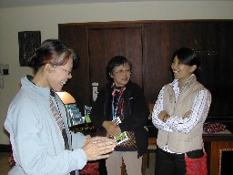 農家らしい作りの休憩所、中にはお茶やコーヒーのサービスもあり羊毛製品などを売っていた(写真右)