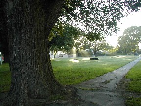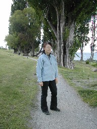 湖の畔の散歩道、大きなポプラの木が立っていた(写真左)