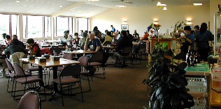 ビジターセンターを兼ねた大きな宿舎、建物の中には大勢の登山者がいた(写真右)