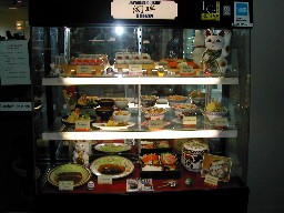 入り口にあったメニュー棚(写真左)、「サーモン丼}とローマ字で書いてあった(写真右)