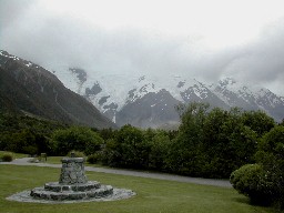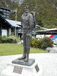 そのマウントクックでヒマラヤ登山の訓練をしたというヒラリー卿の銅像がマウントクックの方を向いて立っていた(写真右)