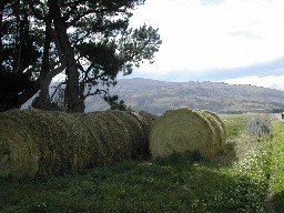 干し草の大きなロールが置いてあった。冬の蓄えだろうか(写真上)