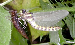 です。湿地の中のギボウシにも青と白があります。鬼ヤンマがヤゴから脱皮をしていました。山野草に詳しいU君