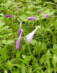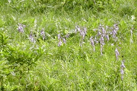 いぼた園地のギボウシ 草の周りにまとわりついた奇妙なもの センターの下にあったホタルブクロ