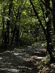 幸い道を覆うように木の枝が張り出していますので、少しくらいの雨でしたら濡れる事はありません。次第に