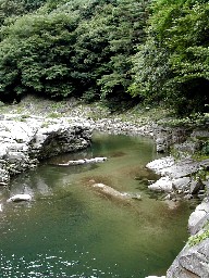 私達は熊押し滝を目指しました。滝の流れには小さなサンショウウオがいました。滝でしばらく休んだ後、来た道
