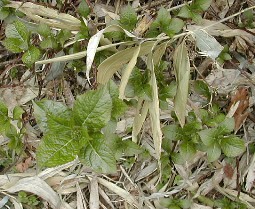 山頂付近にもたくさんショウジョウバカマがあった。 下山途中見かけたドングリの芽吹き