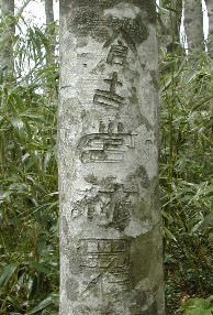 ぶなの花 ぶなの幹に刻まれた倉吉営林署の文字