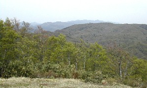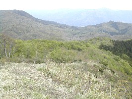 千軒平から眺めた周辺の景色 ぶなの新緑が目に鮮やか