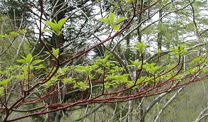 ウワミズザクラの蕾 調査中(枝が赤くきれいだった)