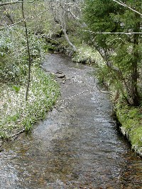 園内を流れる川(清流) 私達は熊押し滝へ行く途中の登山口から山の中へ入った。ここから非難小屋の横に出て、もみじ平へ