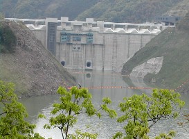 いよいよ貯水間近な苫田ダム 2004年7月13日掲載