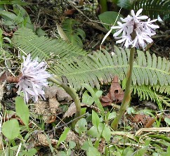 シダの仲間の芽吹き ミヤマカタバミの群落