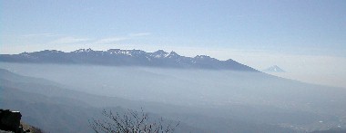 一大パノラマです。左から八ヶ岳と富士山、そして南アルプスと続きます。 ![]()