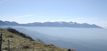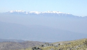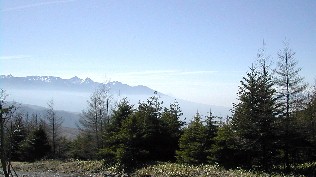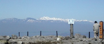 南アルプスから目を転ずると中央アルプス、そして木曽の御嶽山が孤高の姿を見せます。 ![]()