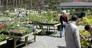 買ってきた弁当を開きました。また、園内では苗の展示即売も行われていました。車で来た人達は思い思いの苗を買い