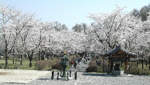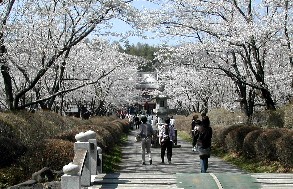 聖光寺はまさに桜の花盛り、広い庭は桜の花一色でした。 本堂から眺めた参道です。大勢の人が訪れていました。 「XIVに着いて」