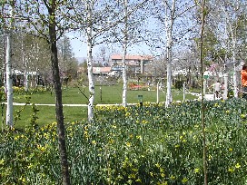 ありませんが、庭園が一望できます。水仙やチューリップと言った、すでに盛りを終えたものもあれば、やっと芽が出始めた