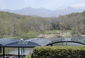 大変きれいな眺めです。テラスの正面には八ヶ岳連峰が見えます。鶯が鳴き静かな昼の一時です。