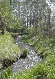 考古館の周辺の落葉松林、そして小川、広大な縄文遺跡跡 ![]()