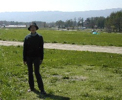 ところだそうです。今は発掘作業も終わり埋め戻されて公園のようになっています。この緑地帯を横切って田圃の方に降り