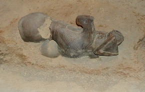 でしょうか。異様に臀部を誇張した土偶です。発掘された時の様子が大きなパネル写真にしてありました。小さな土偶なの